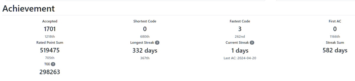 自分は今年で ICPC ラストイヤーで、今まで Championship に進出したことはないが、今年最初で最後の Championship に進めるかもしれない。そうするとまだまだ気を抜けない状況になっている。こうやって改めて今の自分が置かれている状況を書いているとモチベーションが刺激されるね。