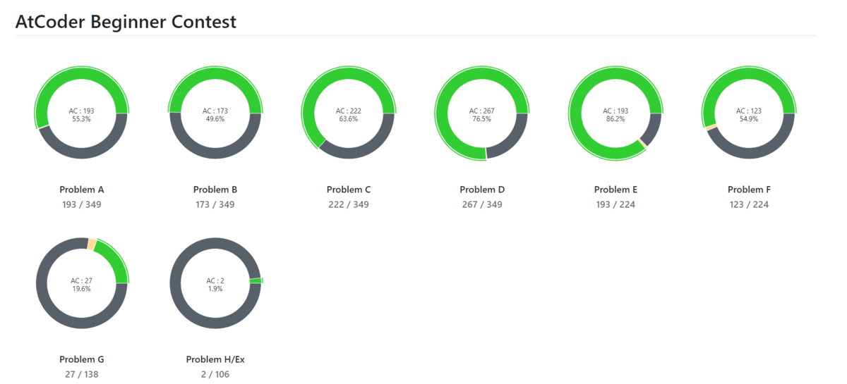 結果は9完に。戦略でペナ差で勝っていきたいなどとほざいていたが、9完中3問がラスト60分だから全く速解き型ではなく、結果的に9完内で一番下の順位だった。とはいえ前半の時間を効率的に使えたからちゃんと手を付けた9問全部を時間内に通しきれたのかもね。