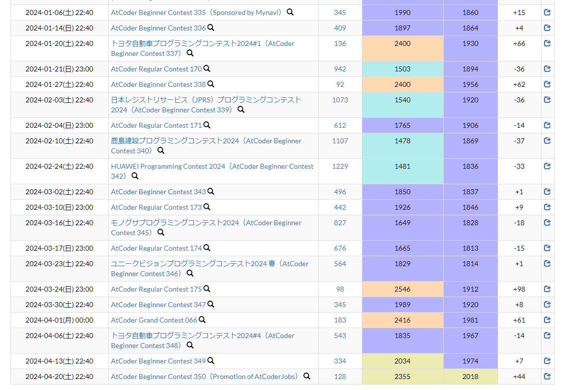 それ以外に個人的にやった準備として、睡眠調整がある。調整をする前の睡眠時間について、眠くなったら寝る お昼過ぎに起きる 遊びたくて遊ぶ お腹減ったらご飯を食べる という感じで午前5時頃にならないと寝られない状態になっていた。しかしコンテスト当日は日本時間で午前7時頃に起きる必要があり、そのためには前日の23時頃に寝たい。しかし体内時計がそれを許さない、どなっていたため、2週間前くらいから睡眠時間を必死に後ろに倒した。完全な昼夜逆転を一瞬挟み、結果16時間ほど後ろに倒して21時頃に眠る生活に。B1~B2 の頃は生活習慣が終わりすぎていて1か月半で睡眠時間が一周するほどカスな生活リズムをしていたため、昼に予定があっても睡眠時間を後ろにずらすためのテクニックをいっぱい持っていた。それが功を奏したという訳やね。あの頃の終わりの生活が伏線として回収される日がくるなんて。人生何があるか分からないですね。